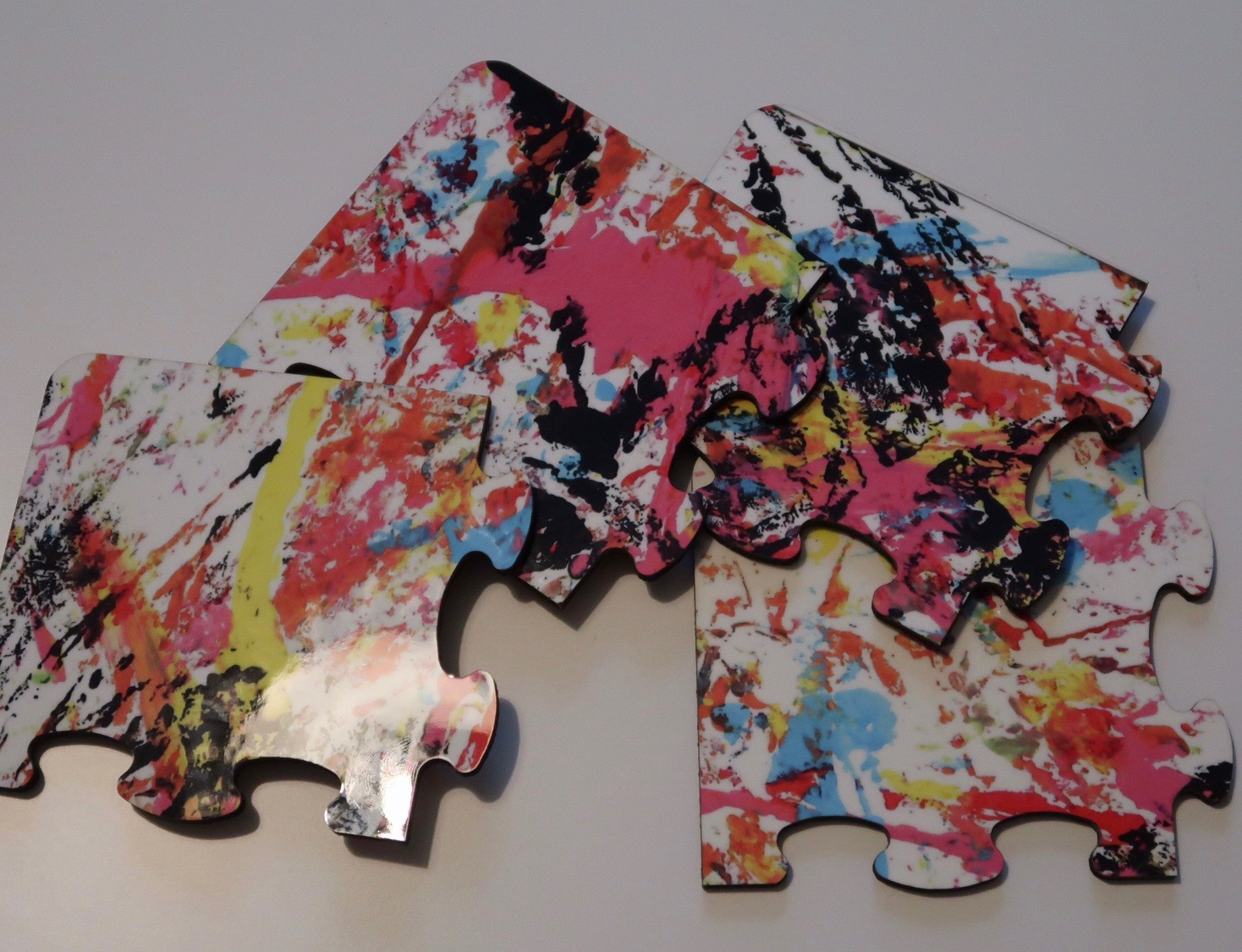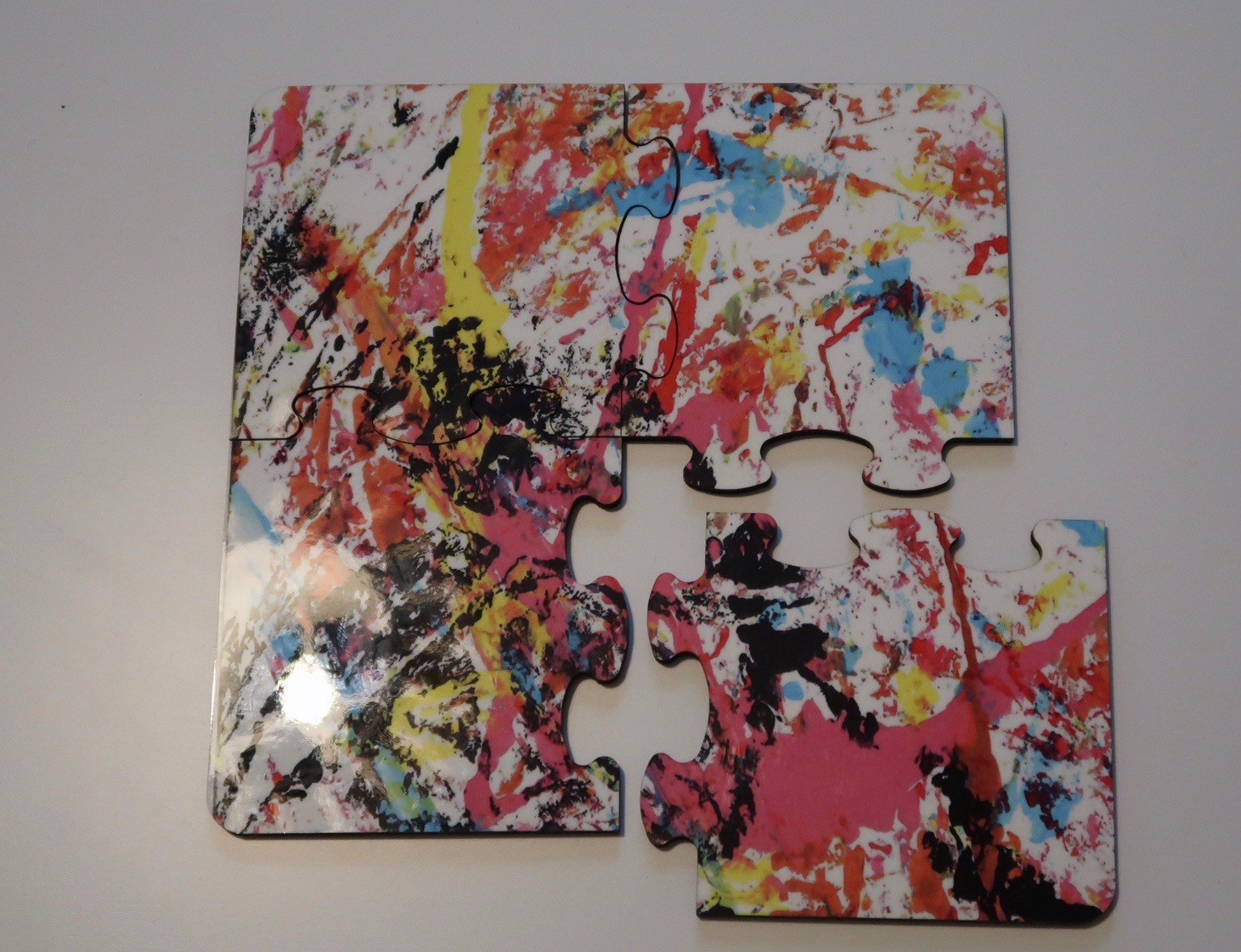 Don't sweat the small stuff...and don't let your drink sweat on the coffee table. Abbie's Art Puzzle Coasters set of 4 interlocking coasters.